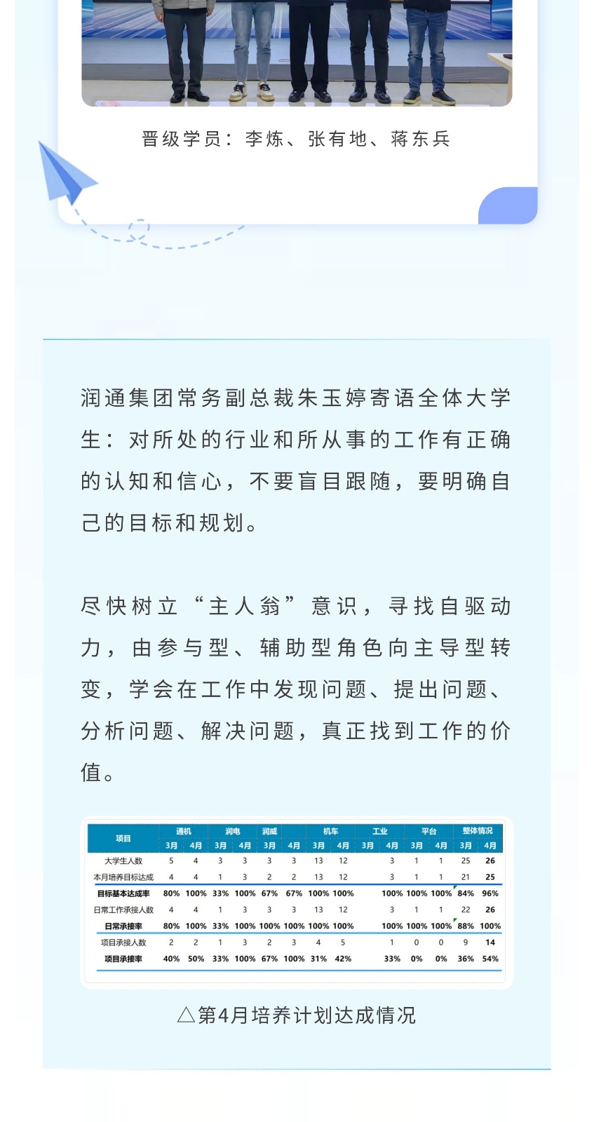 潤通集團21-23屆優秀大學生一季度工作總結匯報圓滿完成