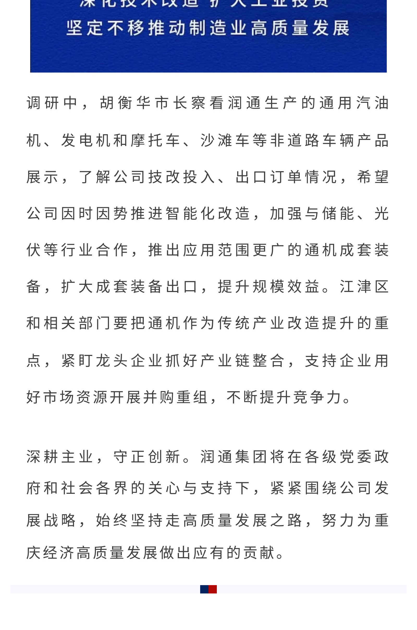 重慶市委副書記、市長胡衡華蒞臨潤通調研指導