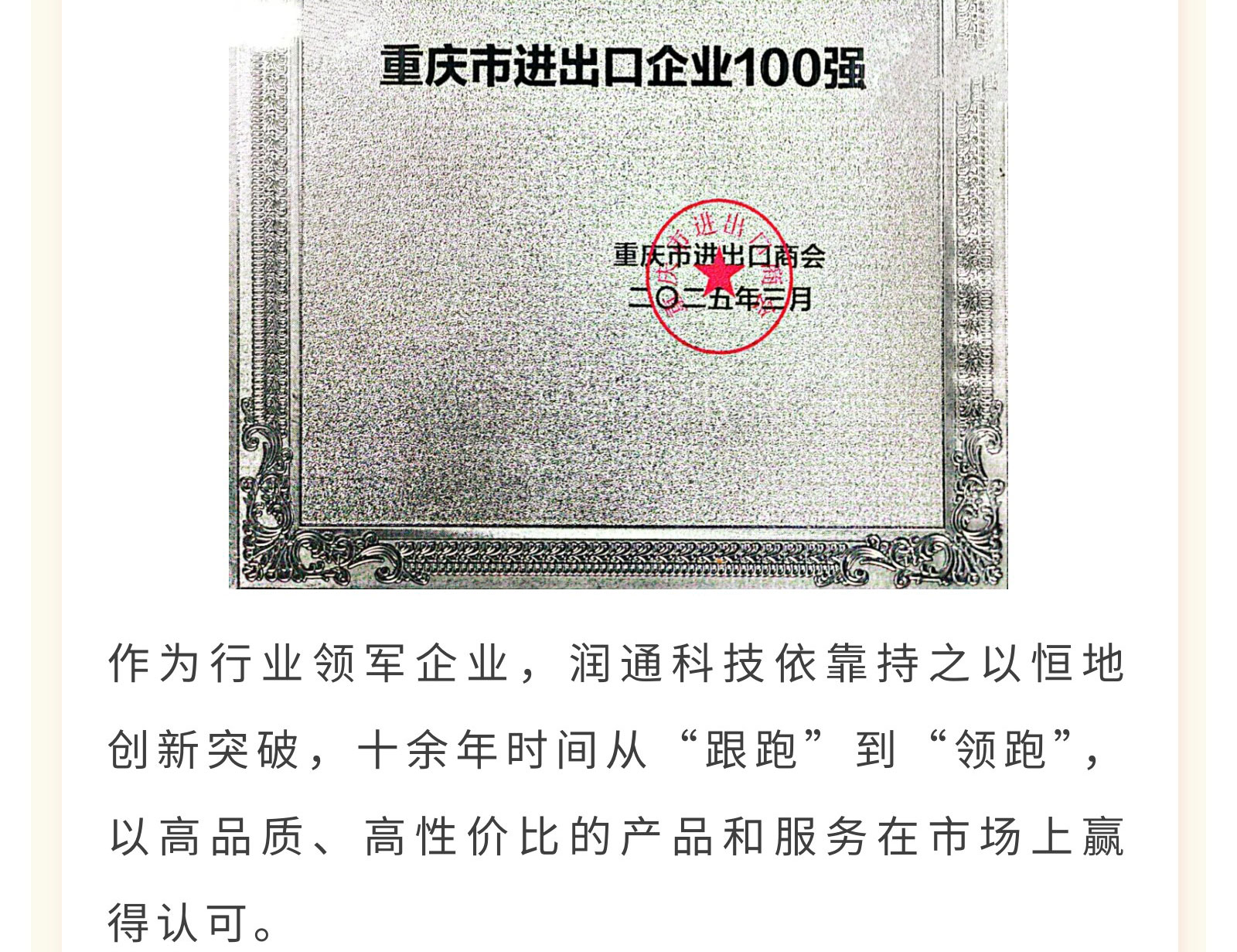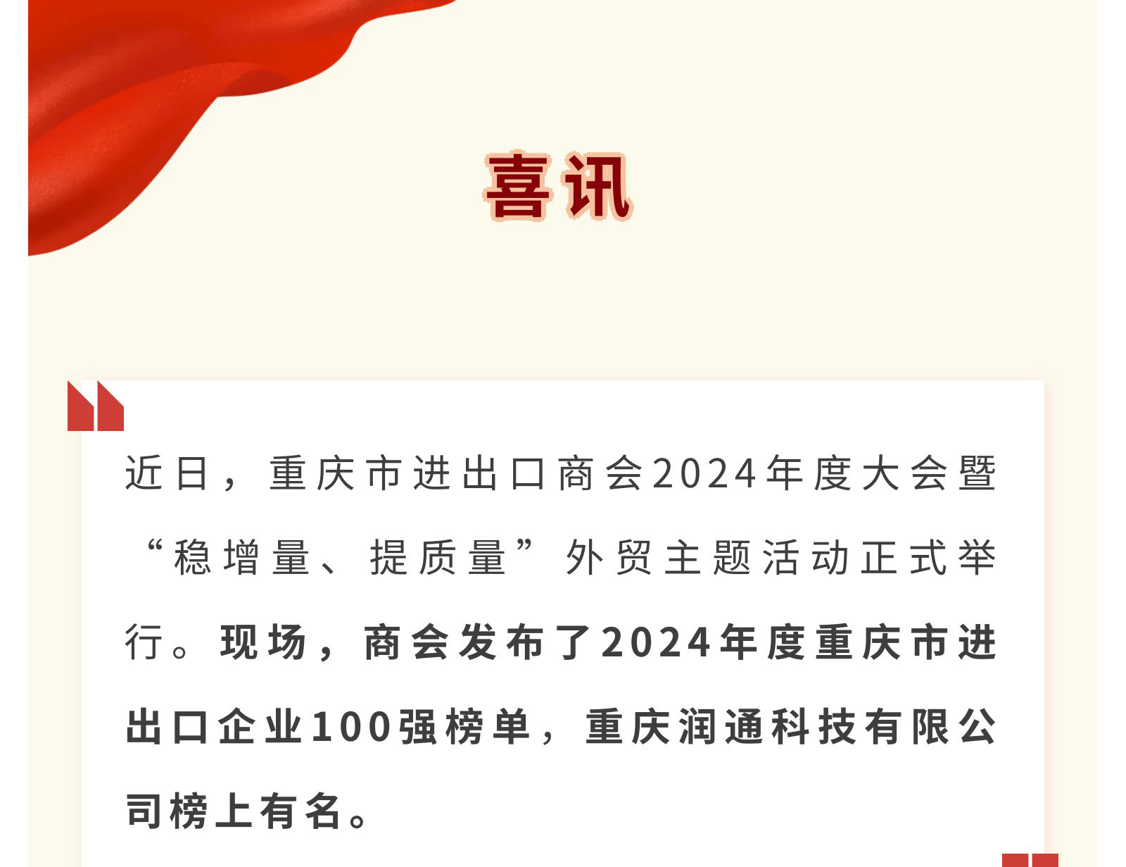 喜訊丨潤通科技上榜2024年度重慶市進出口企業100強